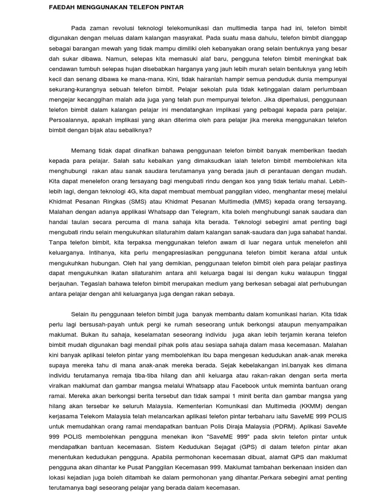 Karangan Kebaikan Dan Keburukan Telefon Bimbit